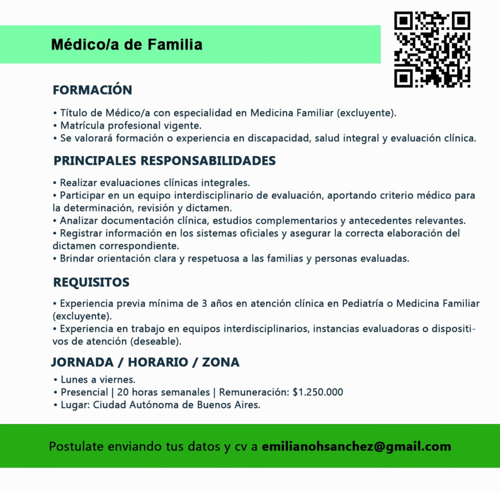 ▶️ Profesión: MEDICINA GENERAL Y/O FAMILIAR Y CLINICOS MEDICOS